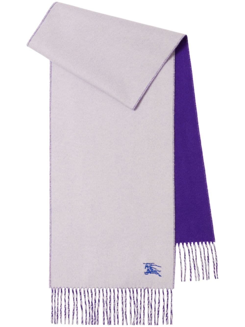 Equestrian Knight cashmere scarf Highlights - Light purple - Dark purple - Cashmere - Knitted construction - Fine knit - Fringe detailing - Signature equestrian knight motif - Wraparound style Made in United Kingdom Composition Cashmere 100%