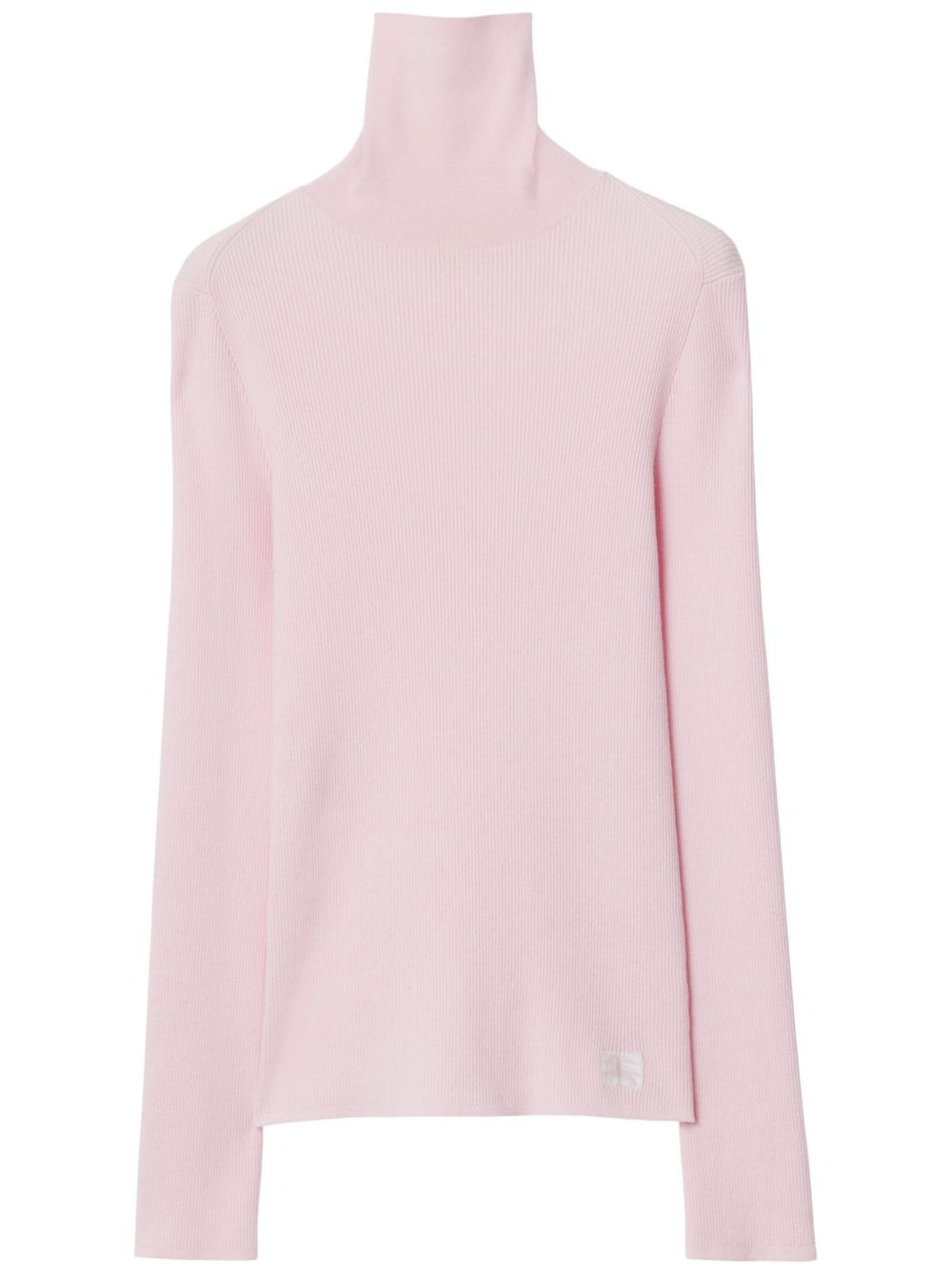 Equestrian Knight-patch wool-blend jumper Highlights - Light pink - Wool blend - Ribbed knit - Signature equestrian knight motif - Logo patch to the front - High neck - Long sleeves - Straight hem Made in Italy Composition Wool 89%, Polyester 11% Washing instructions Dry Clean Only