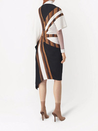 flag-print silk asymmetric dress Burberry pays homage to its founding country with this belted design. Crafted from lightweight silk, this short-sleeve dress is decorated with the Union Jack in an alternative colour palette. Made in Italy Composition Silk 100%