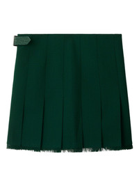 frayed-edge wool pleated skirt Highlights - Dark green - Wool - Frayed edge - Fully pleated - Side buckle fastening - Thigh-length Imported Composition Wool 100%