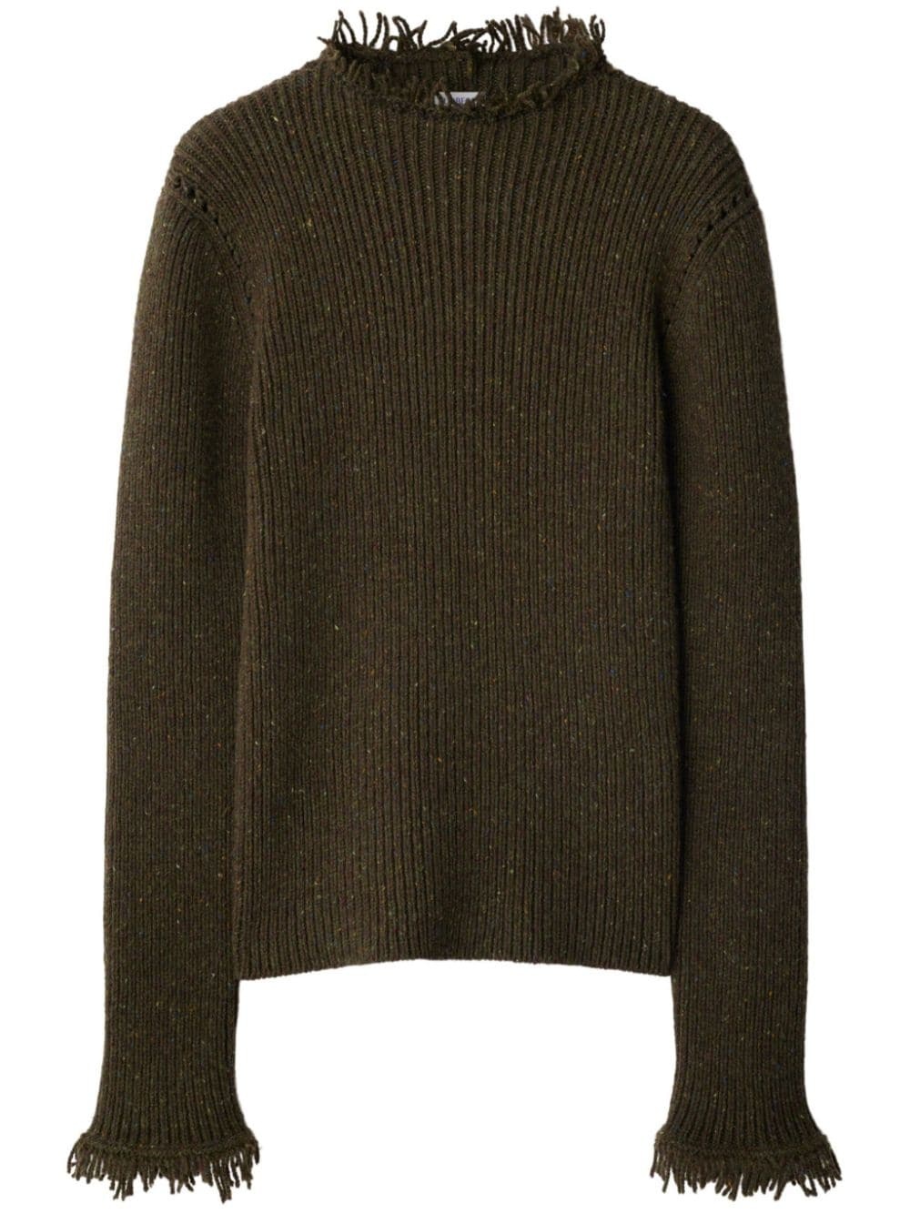frayed wool jumper Highlights - Coffee brown - Wool - Ribbed knit - Frayed edge - Crew neck - Long sleeves - Straight hem Made in Italy Composition Wool 100%