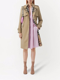 Check Panel Cotton Gabardine Trench Coat