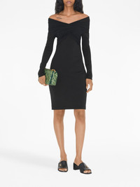 gathered-detail off-shoulder midi dress Highlights - Black - Stretch-design - Gathered detailing - Off-shoulder - Long sleeves - Straight hem - Knee-length Made in Italy Composition Polyester 92%, Elastane 8%