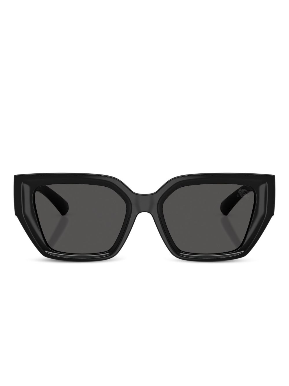 geometric-frame logo-plaque sunglasses Highlights - Black - Geometric frame - Gold-tone logo plaque - These glasses come with a protective case. Made in United States Composition Plastic 100%, Acetate 100%