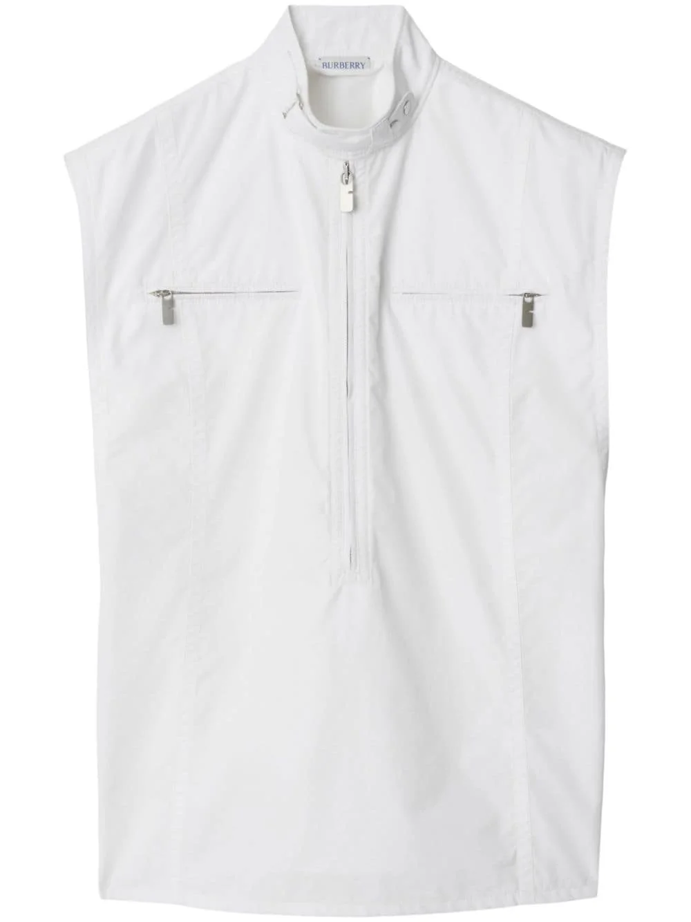 half-zip cotton tank top Highlights - White - Cotton - Poplin texture - High neck - Half front zip fastening - Sleeveless - Two zip-fastening chest pockets - Straight hem Imported Composition Cotton 100% Washing instructions Machine Wash