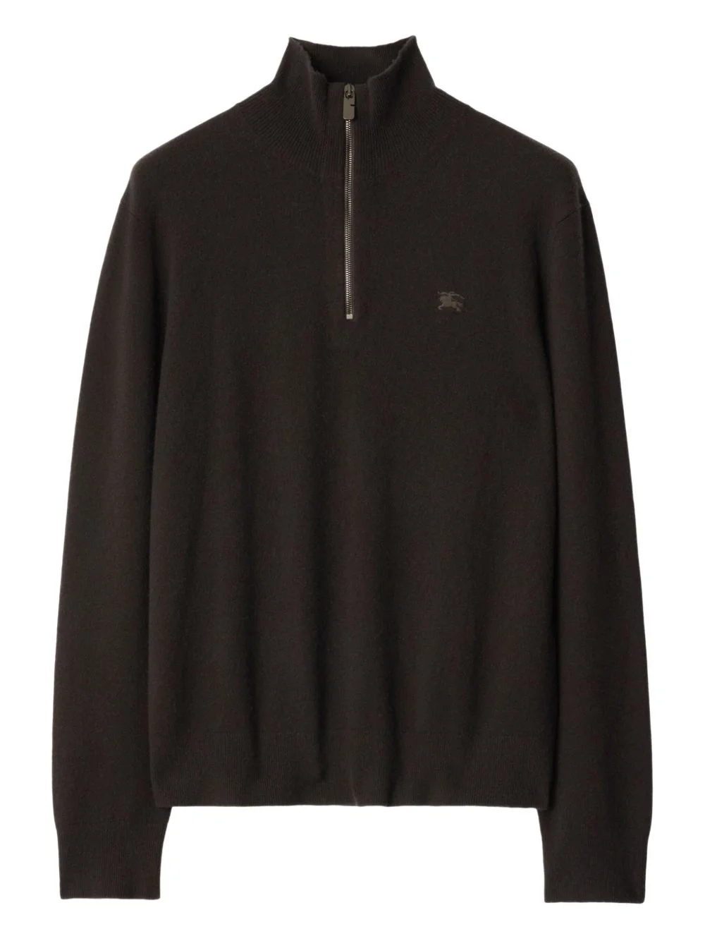 half-zip embroidered sweater Highlights - Scorched brown - Half-zip closure - Rib-knit trims - Embroidered equestrian knight design - Cashmere blend - Tonal embroidery Imported Composition Cashmere 96%, Polyamide 3%, Elastane 1% Washing instructions Read Manufacturer Guidelines