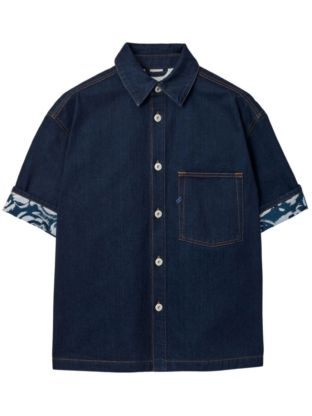 Heavyweight logo-patch denim shirt Highlights - Indigo blue - Cotton - Denim - Logo patch to the rear - Contrast stitching - Spread collar - Chest patch pocket - Front button fastening - Short sleeves - Straight hem Made in Italy Composition Cotton 100% Washing instructions Read Manufacturer Guidelines