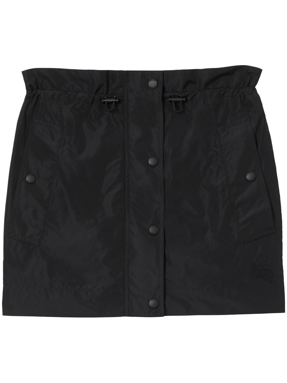 high-waisted button-up skirt Highlights - Jet black - Front button fastening - High-waisted - Two front button-fastening jetted pockets - Straight hem - Above-knee length Made in Italy Composition Polyester 100%