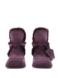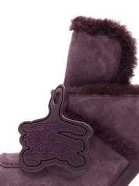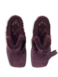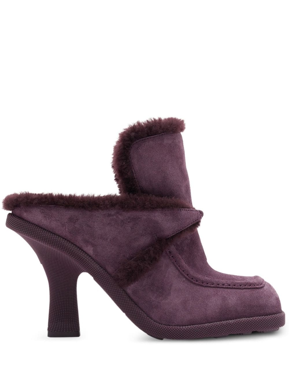 Highland mules Highlights - Plum purple - Suede - Shearling lining - Tonal stitching - Logo tag - Slip-on style - Square toe - Branded footbed - Mid heel Made in Italy Composition Suede 100% SIZE & FIT Measurement HEEL 3.93 in(10 cm) Sole height 0.59 in(1.5 cm)