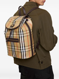 Highlands checked leather-trim backpack Highlights - Sand beige - Check pattern - Leather trims - Top handle - Adjustable shoulder straps - Exterior zip pocket - Leather patch at front - This piece comes complete with a protective dust bag. Made in Italy Composition Outer: Calf Leather 100%, Cotton 69%, Viscose 21%, Linen/Flax 10% SIZE & FIT Measurement DEPTH 7.08 in(18 cm) HEIGHT 15.74 in(40 cm) WIDTH 10.62 in(27 cm)