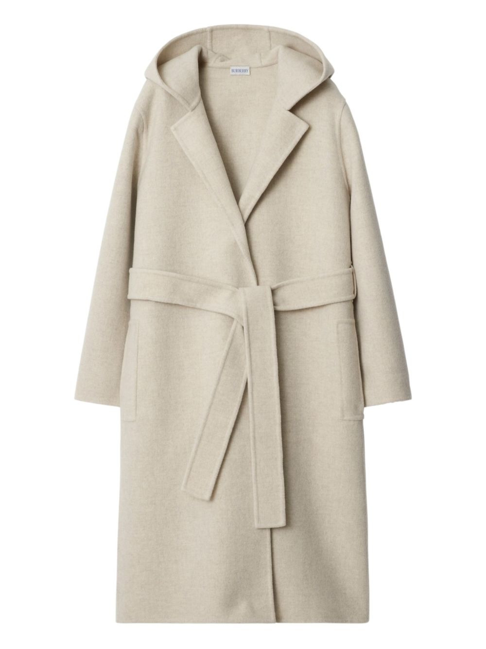 hooded cashmere coat Highlights - Light beige - Cashmere - Hooded design - Self tie belt - Welt pockets - Wrap style Made in Italy Composition Cashmere 100% Washing instructions Read Manufacturer Guidelines