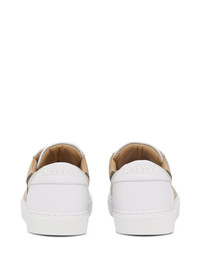 House Check low-top sneakers A coveted motif of the brand, the House Check is applied to these low-top sneakers as part of Burberry's SS22 collection. Crafted in Italy from soft calf leather, they feature a logo detail at the heel counter and sit atop a flat rubber sole. Highlights - Optic white/archive beige - Calf leather - Vintage check pattern - Panelled design - Front lace-up fastening - Round toe - Branded heel counter - Flat rubber sole Made in Italy Composition Leather 100% SIZE & FIT FittingInformation This piece fits large – take one size down