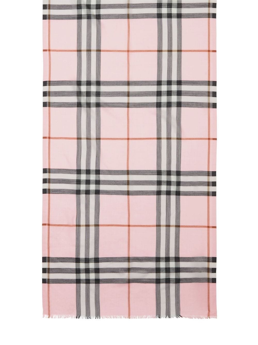House Check patterned scarf Highlights - Pink - Wool-silk blend - House check pattern - Lightweight construction - Fringed edge Made in Italy Composition Wool 51%, Silk 49% SIZE & FIT Measurement LENGTH 86.61 in(220 cm) WIDTH 27.55 in(70 cm)