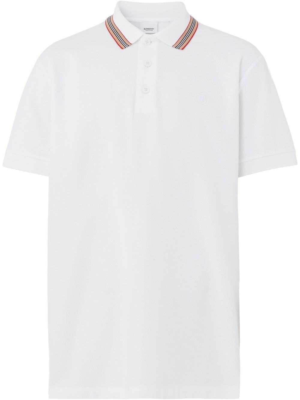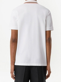 Icon Stripe cotton polo shirt Burberry gives a subtle branded completion to this polo shirt, simply decorating it with an Icon Stripe over the neckline and an embroidered monogram over the chest. Highlights - White - Cotton - Signature icon stripe - Embroidered logo at the chest - Polo collar - Short sleeves - Straight hem Imported Composition Cotton 100% Washing instructions Machine Wash