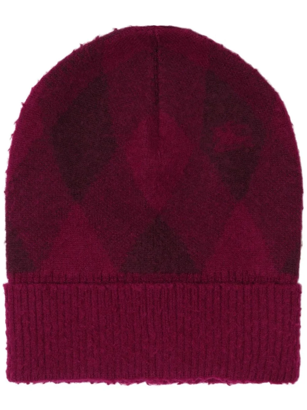 intarsia-knit logo argyle checked beanie Highlights - Bordeaux red/dark red - Wool - Knitted construction - Argyle check pattern - Intarsia-knit logo - Turn-up brim Made in Italy Composition Wool 100% Washing instructions Dry Clean Only