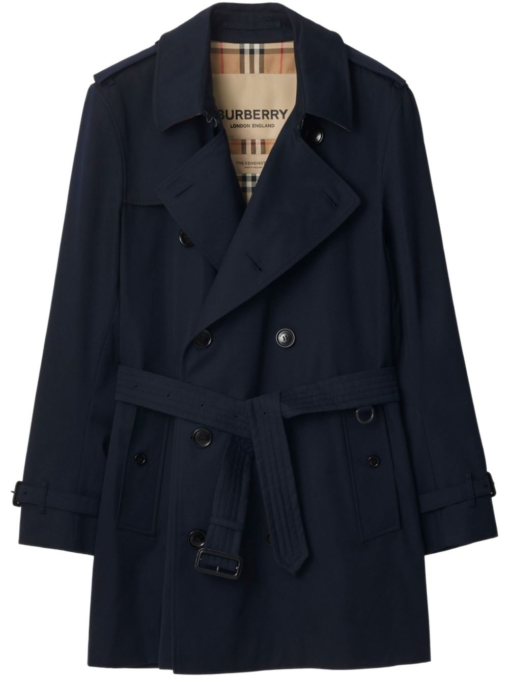 Kensington Heritage trench coat Highlights - Midnight blue - Cotton - Gabardine weave - Water-resistant - Double-breasted button fastening - Wide notch lapels - Long sleeves - Chest flap pocket - Belted waist - Two side button-fastening pockets - Belted cuffs - Vintage check-pattern lining - Straight hem Made in United Kingdom Composition Outer: Calf Leather 100%, Organic Cotton 70%, Cotton 30% Lining: Cotton 100%, Viscose 100%