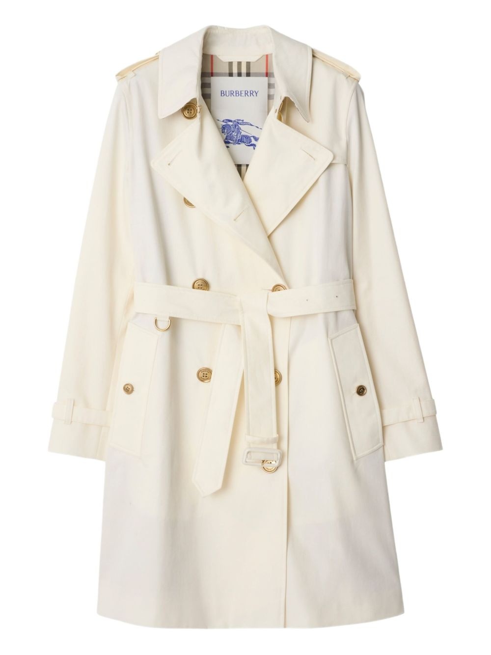 Kensington trenchcoat Highlights - White - Double-breasted button fastening - Two side welt pockets - Belted waist - Buttoned central rear vent Made in United Kingdom Composition Lining: Cotton 100%, Viscose 100% Outer: Cotton 100%, Calf Leather 100%