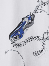 Knight-print cotton T-shirt Highlights - White/blue/grey - Cotton - Crew neck - Drop shoulder - Short sleeves - Knight print - Straight hem Imported Composition Cotton 100% Washing instructions Machine Wash