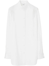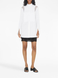 lace-trim cotton shirt Highlights - Optical white - Cotton - Lace detailing - High neck - Front button fastening - Long sleeves - Buttoned cuffs - Curved hem Imported Composition Cotton 100%