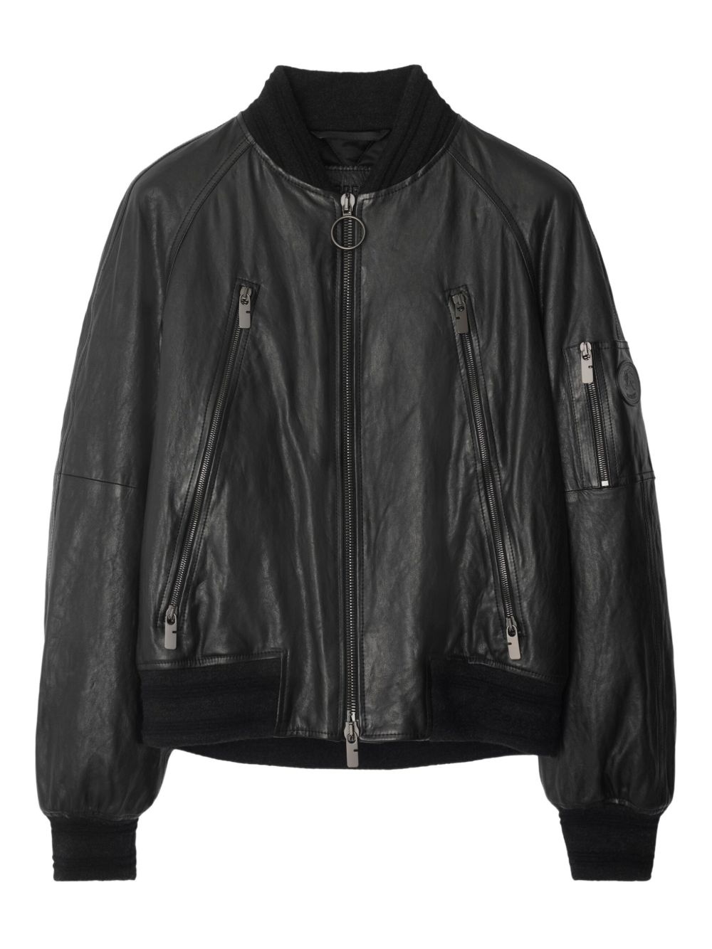 leather jacket Highlights - Black - Front zip fastening - Two side zip-fastening pockets - Sleeve zip pocket - Long sleeves Made in Italy Composition Calf Leather 100% Washing instructions Read Manufacturer Guidelines