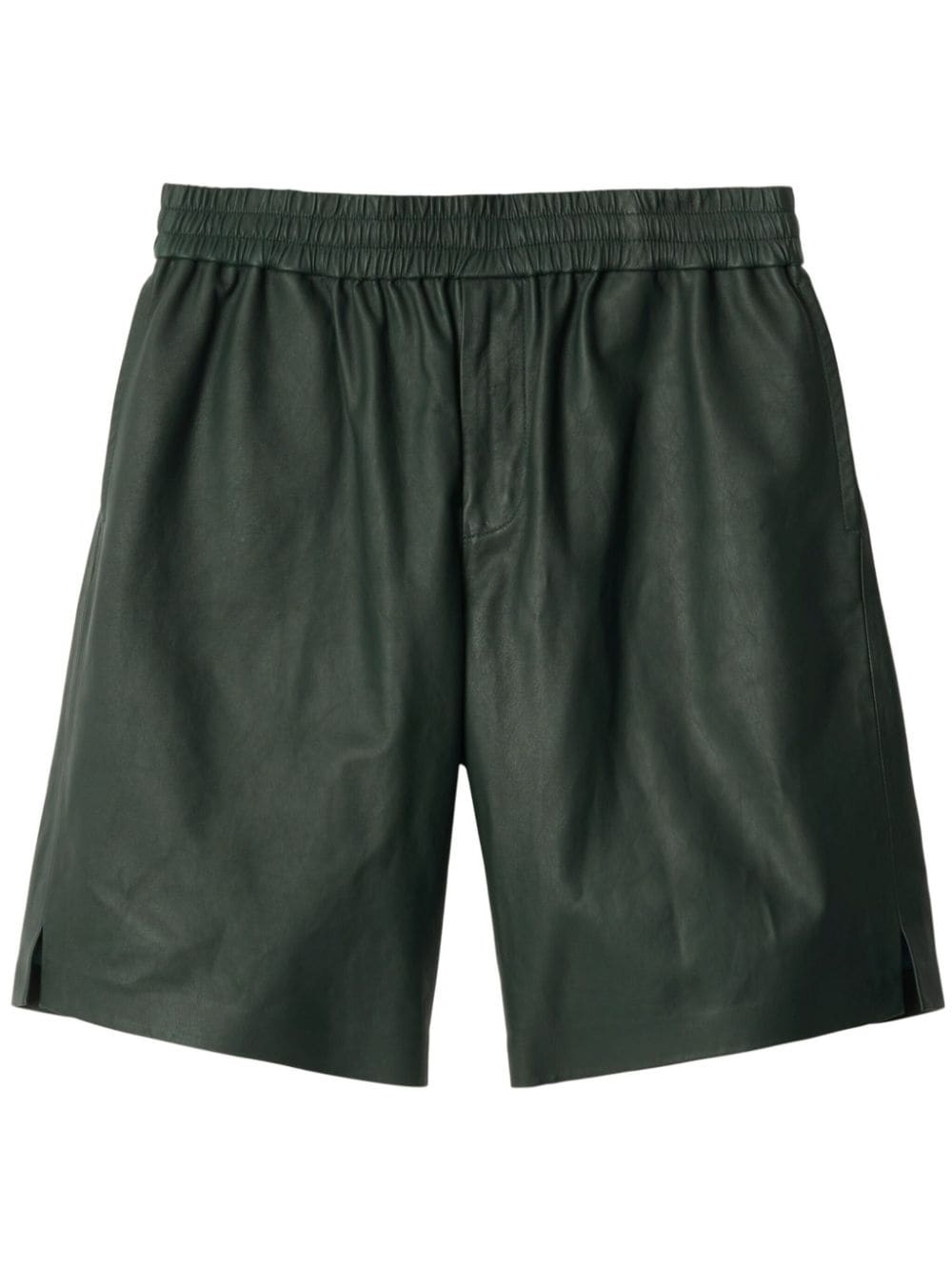 logo-debossed leather shorts Highlights - Forest green - Leather - Debossed logo to the rear - Elasticated waistband - Rear patch pocket - Knee-length Made in Italy Composition Leather 100%