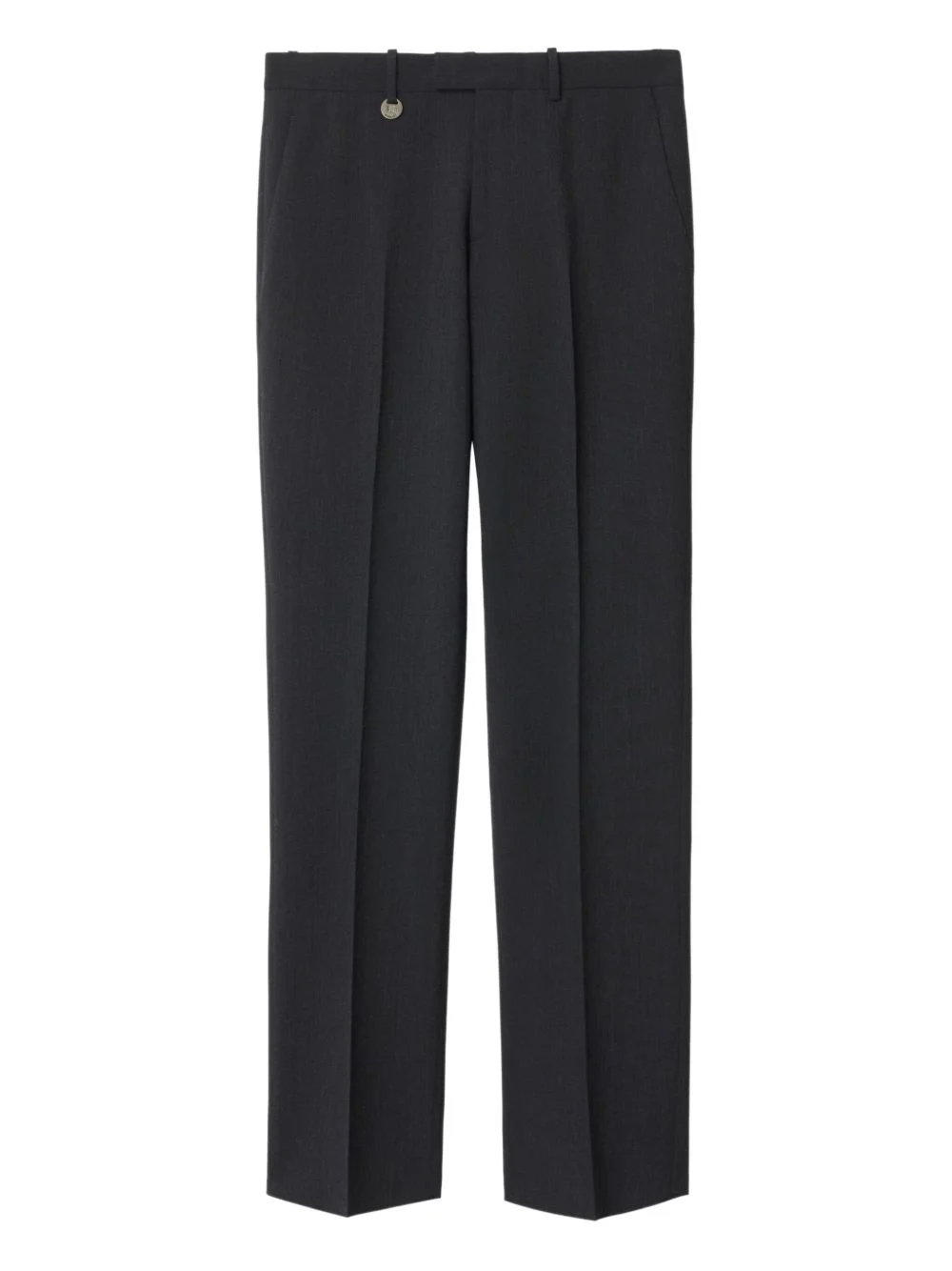 logo-detail tailored trousers Highlights - Dark grey - Wool-blend - Equestrian knight logo detail - Concealed fastening - Side pockets - Back button-fastening welt pockets Made in Italy Composition Outer: Polyester 55%, Wool 45% Lining: Viscose 100% Washing instructions Read Manufacturer Guidelines