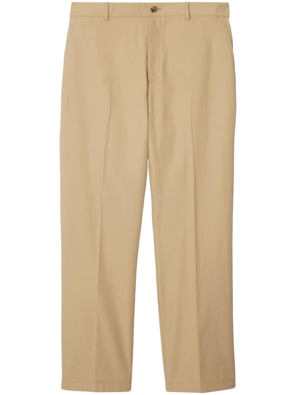 logo-embroidered cotton chino trousers Highlights - Beige - Cotton - Embroidered logo to the rear - Belt loops - Front button fastening - Two diagonal pockets to the sides - Two rear welt pockets - Slim cut Imported Composition Lining: Cotton 100% Outer: Cotton 100%, Buffalo Horn 100%