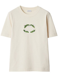 logo-embroidered cotton T-shirt Highlights - Beige - Cotton - Jersey texture - Embroidered logo to the front - Crew neck - Thistle print to the front - Short sleeves - Straight hem Imported Composition Cotton 100% Washing instructions Machine Wash