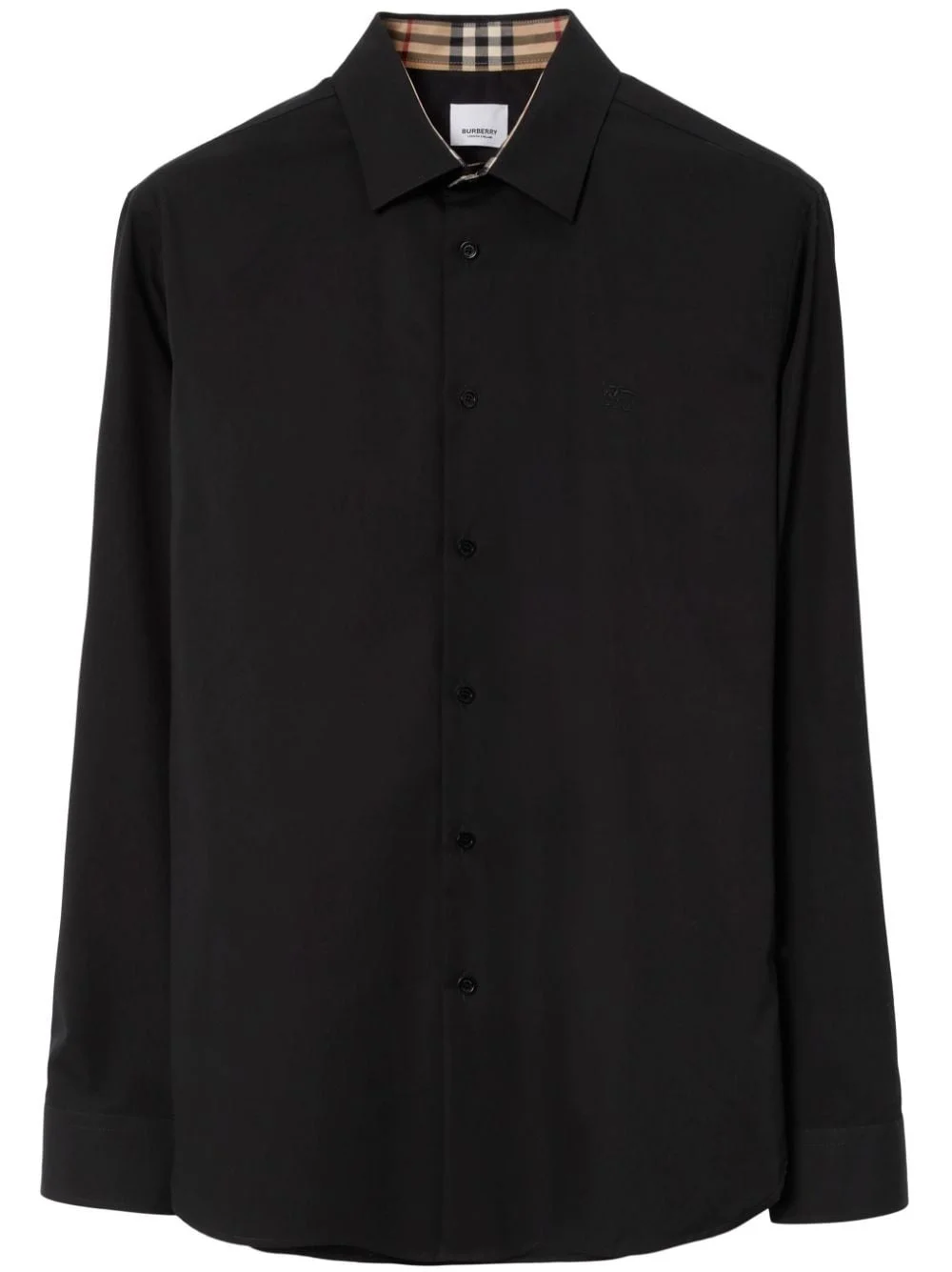 logo-embroidered long-sleeve shirt Highlights - Black - Stretch-cotton - Embroidered logo at the chest - Classic collar - Front button and zip fastening - Long sleeves - Buttoned cuffs - Rear curved hem Imported Composition Cotton 96%, Elastane 4%