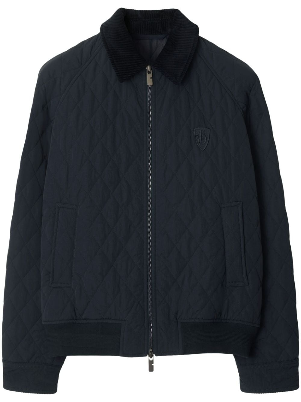 logo-embroidered padded jacket Highlights - Navy blue - Cotton - Padded design - Embroidered logo at the chest - Front zip fastening - Spread collar - Two side welt pockets - Long sleeves - Straight hem Imported Composition Outer: Polyamide 100%, Cotton 100% Lining: Cotton 100%, Polyester 100%