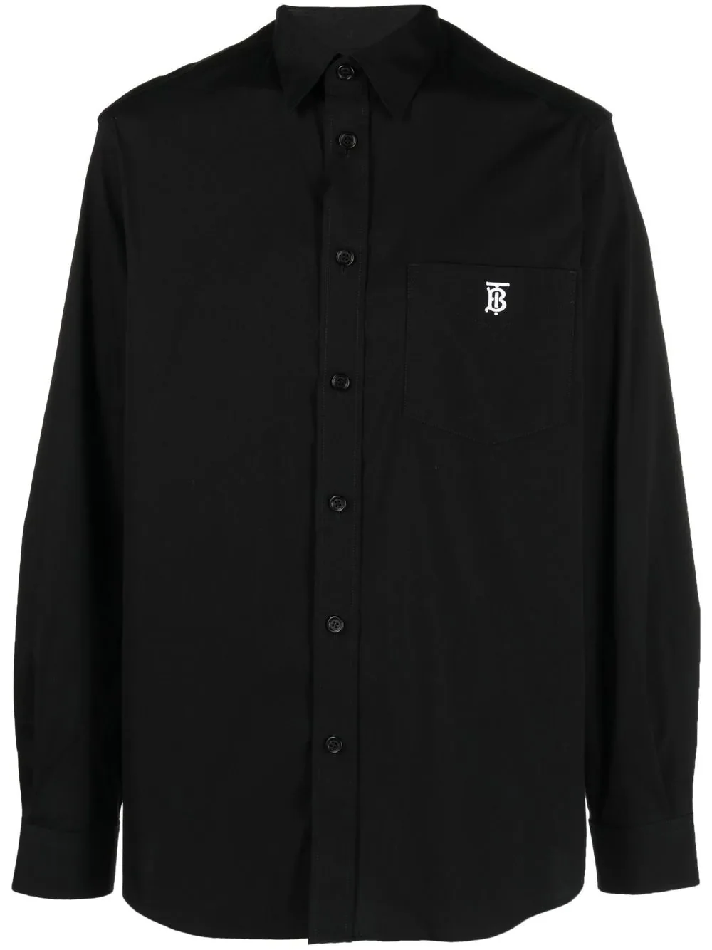 logo-embroidered shirt Highlights - Black - Cotton blend - Embroidered logo at the chest - Classic collar - Long sleeves - Buttoned cuffs - Front button fastening Imported Composition Cotton 76%, Polyamide 19%, Spandex/Elastane 5% SIZE & FIT Model measurements Height 6 ft 2 in(1.87 m) Bust/Chest 36.41 in(92.5 cm) Hips 37 in(94 cm) Waist 29.52 in(75 cm) Washing instructions Machine Wash