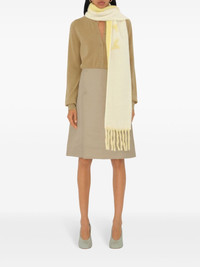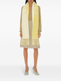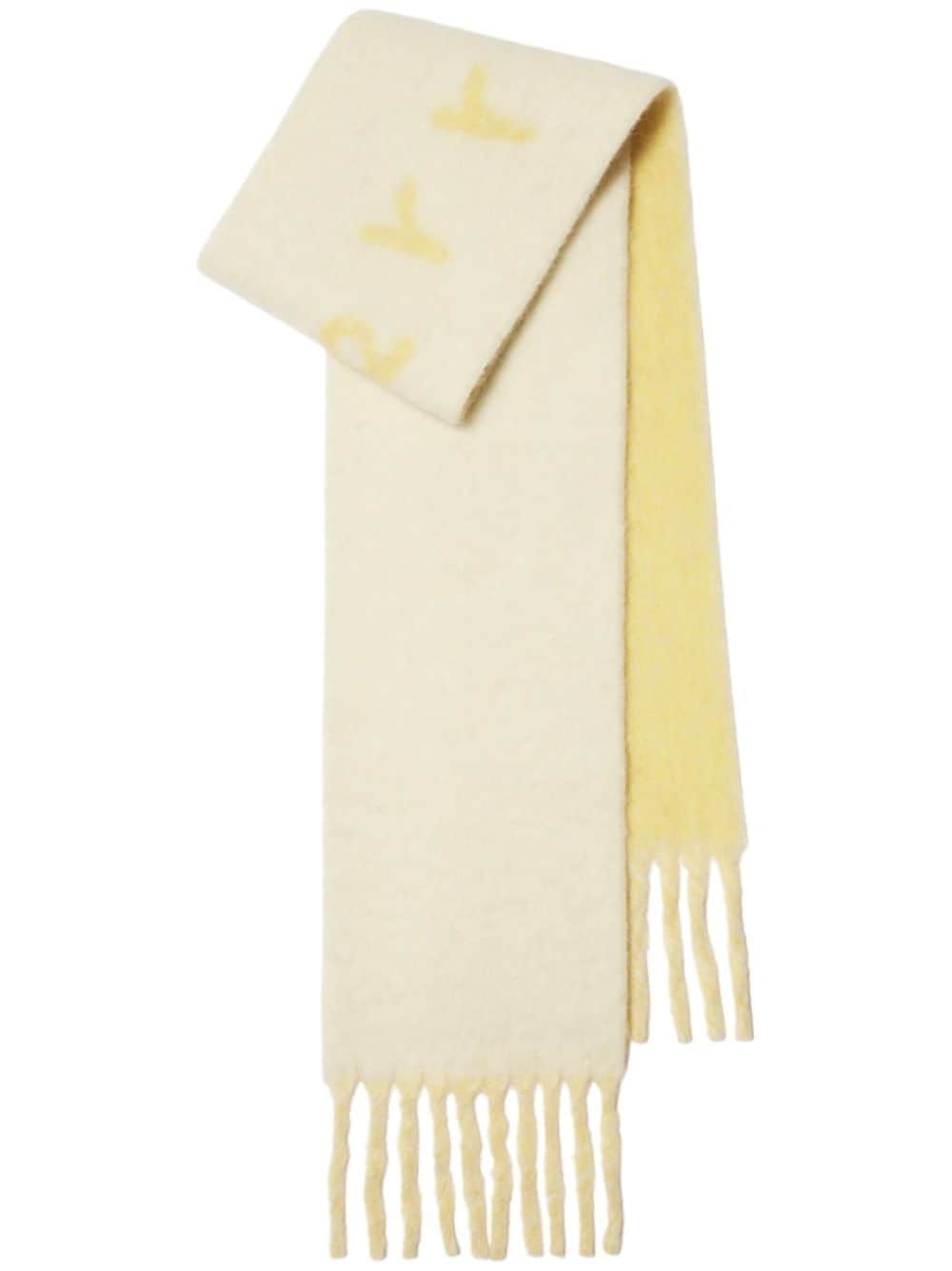 logo-intarsia reversible scarf Highlights - Cream white/citron yellow - Alpaca wool-blend - Brushed effect - Intarsia-knit logo - Reversible - Frayed edge Made in Italy Composition Alpaca Wool 50%, Wool 28%, Polyamide 22% SIZE & FIT Measurement LENGTH 72.83 in(185 cm) WIDTH 8.26 in(21 cm)