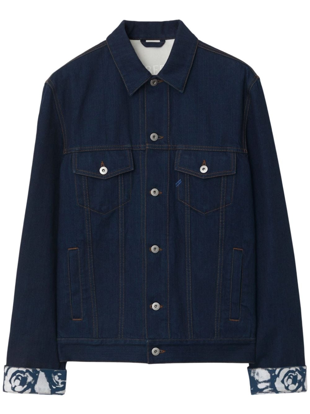logo-patch cotton denim jacket Highlights - Navy blue - Cotton - Calf leather - Logo patch to the rear - Abstract pattern print - Spread collar - Front button fastening - Chest flap pockets - Long sleeves - Straight hem Made in Italy Composition Lining: Polyester 58%, Cotton 42% Outer: Calf Leather 100%, Cotton 100% SIZE & FIT Measurement CHEST 45 in(114.3 cm) SLEEVE LENGTH 26.49 in(67.3 cm) LENGTH 26.49 in(67.3 cm) WAIST 44.01 in(111.8 cm) Washing instructions Hand Wash