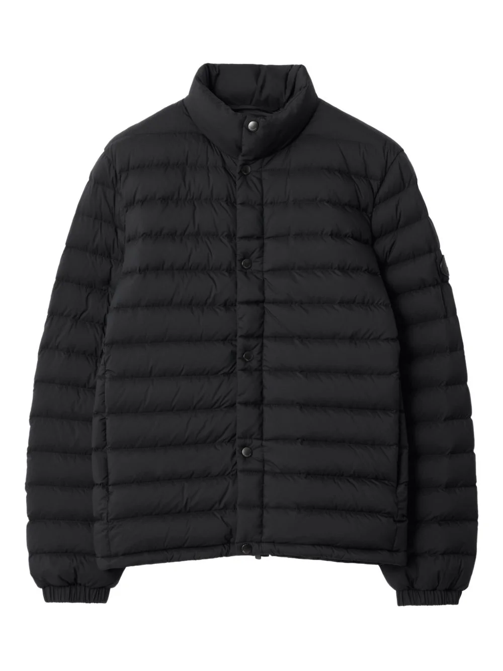 logo-patch padded jacket Highlights - Black - Logo patch - Stand-up collar - Elasticated cuffs Imported Composition Outer: Polyamide 100%, Calf Leather 100% Lining: Polyamide 100%, Polyester 100%, Goose Down 90%, Goose Feather 10% Washing instructions Machine Wash