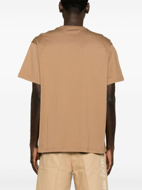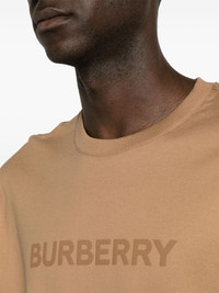 logo-print cotton T-shirt Manually crafted, this minimalistic T-shirt from Burberry shows a brand's logo print in tonal brown across the chest. The top is made from stretch cotton for ultimate comfort. Highlights - Camel brown - Stretch-cotton - Logo print to the front - Crew neck - Short sleeves - Straight hem Imported Composition Cotton 98%, Spandex/Elastane 2% SIZE & FIT Model measurements Height 6 ft 2 in(1.87 m) Bust/Chest 36.41 in(92.5 cm) Hips 37 in(94 cm) Waist 29.52 in(75 cm) Measurement CHEST 44.09 in(112 cm) SLEEVE LENGTH 7.87 in(20 cm) LENGTH 26.77 in(68 cm) Shoulder Width 18.89 in(48 cm) Washing instructions Machine Wash