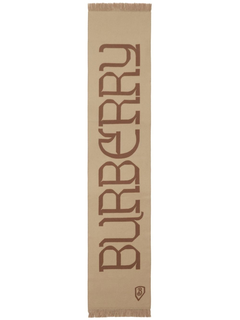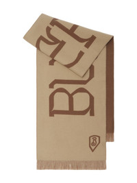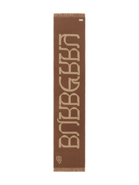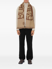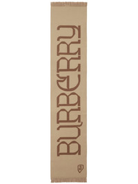 logo wool scarf Highlights - Sand brown - Wool - Knitted construction - Jacquard logo motif - Fringed edge - Wraparound style Made in Italy Composition Wool 100% SIZE & FIT Measurement LENGTH 66.14 in(168 cm) WIDTH 12.99 in(33 cm)