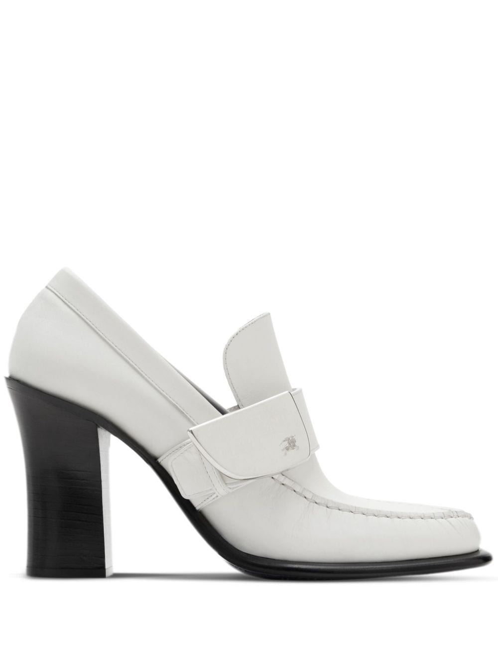 London Shield high-heel pumps Highlights - White/black - Calf leather - Signature shield plaque - Signature equestrian knight motif - Stitched edge - Square toe - Slip-on style - High block heel - Contrast lining Made in Italy Composition Sole: Calf Leather 95%, Thermoplastic Polyurethane (TPU) 5% Lining: Calf Leather 95%, Thermoplastic Polyurethane (TPU) 5% Outer: Leather 100%