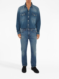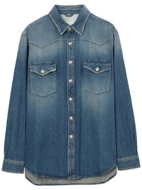 long-sleeve denim shirt Highlights - Blue - Cotton - Denim - Spread collar - Front button fastening - Long sleeves - Curved hem - Two button-fastening chest pockets Made in Italy Composition Lining: Polyester 65%, Cotton 35% Outer: Cotton 100% SIZE & FIT Measurement CHEST 49.01 in(124.5 cm) SLEEVE LENGTH 25 in(63.5 cm) Shoulder Width 18.5 in(47 cm) LENGTH 30 in(76.2 cm) WAIST 47.99 in(121.9 cm)