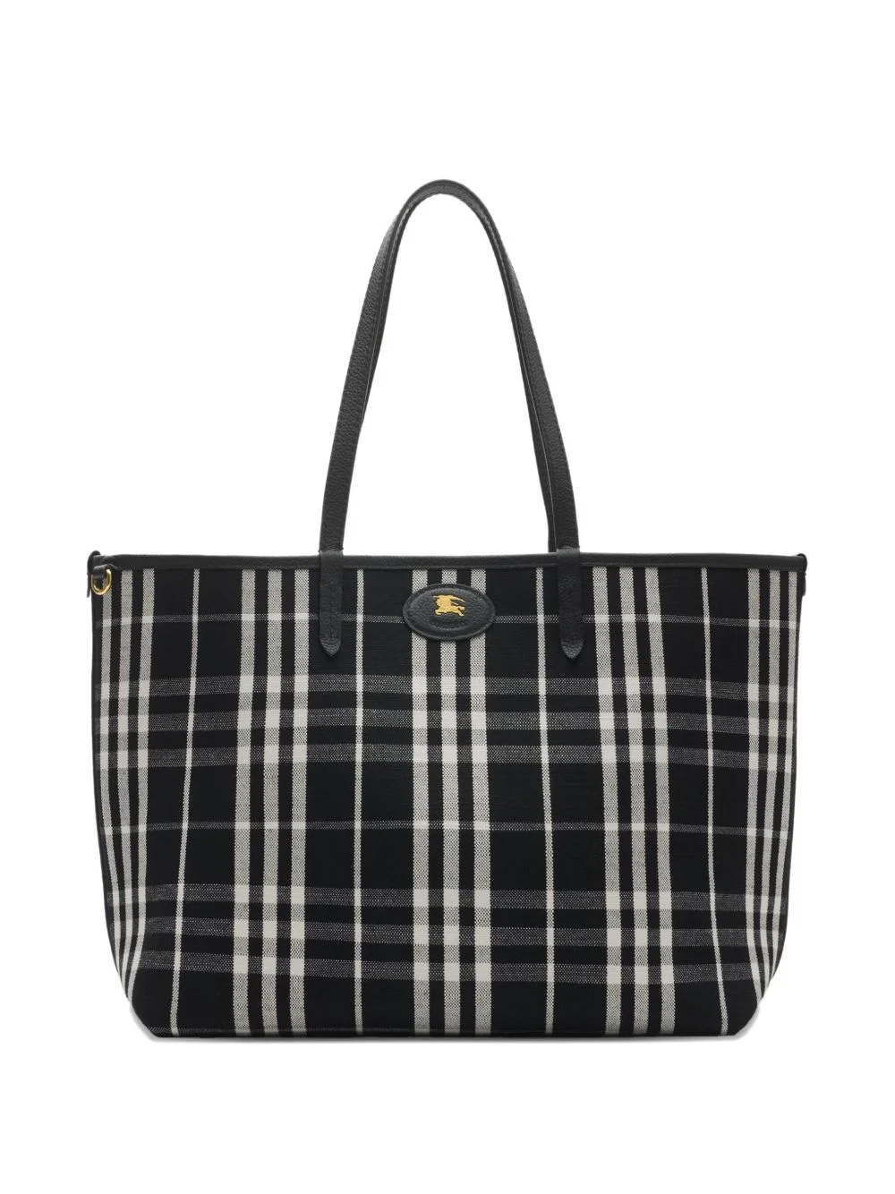 Medium Bloomsbury reversible check tote bag Highlights - Black - Leather - Reversible - Check reverse - Top handles - Detachable pouch - Painted edges - Metal hardware Made in Italy Composition Outer: Calf Leather 100%, Cotton 67%, Organic Linen 23%, Leather 10% SIZE & FIT Measurement DEPTH 6.69 in(17 cm) HEIGHT 11.81 in(30 cm) WIDTH 14.76 in(37.5 cm)