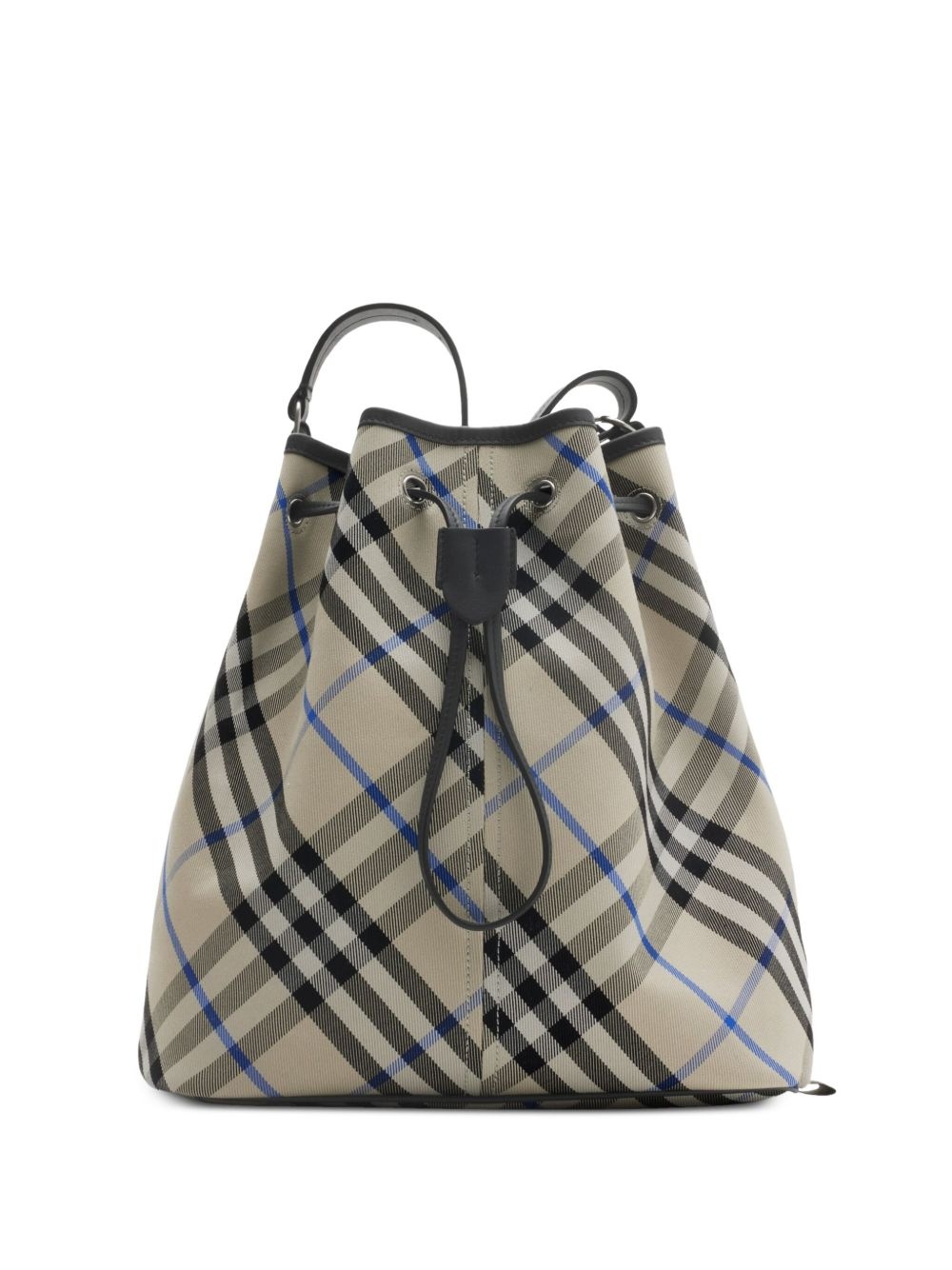 medium Check bucket bag Highlights - Light beige - Top drawstring fastening - Adjustable shoulder strap - Check pattern - Unlined Imported Composition Outer: Calf Leather 100%, Organic Cotton 70%, Cotton 30% SIZE & FIT Measurement DEPTH 6.29 in(16 cm) HEIGHT 10.82 in(27.5 cm) WIDTH 11.41 in(29 cm)
