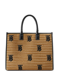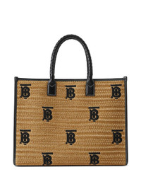 medium Freya tote bag Highlights - Caramel brown - Black - Interwoven design - All-over logo embroidery - Main compartment - Braided top handles - Top clip fastening - Full lining Made in Italy Composition Outer: Polyester 47%, Viscose 33%, Polyamide 15%, Elastane 5% Lining: Cotton 55%, Linen/Flax 45% SIZE & FIT Measurement DEPTH 6.29 in(16 cm) HANDLE 5.7 in(14.5 cm) HEIGHT 12.59 in(32 cm) WIDTH 15.74 in(40 cm)
