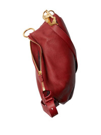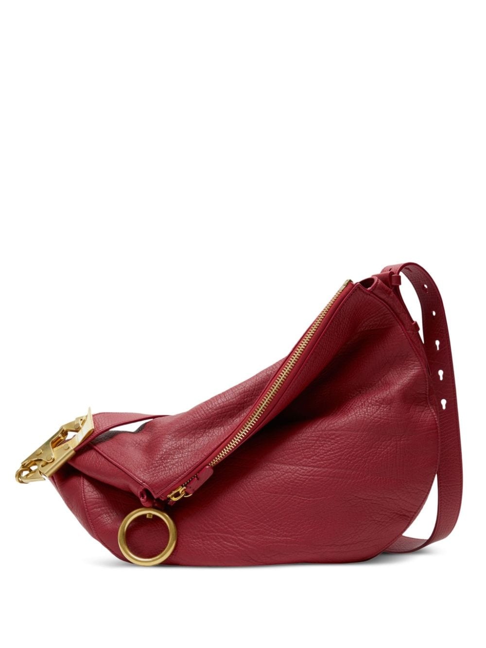 medium Knight leather shoulder bag Highlights - Ruby red - Calf leather - Crinkled finish - Adjustable shoulder strap - Top zip fastening - Signature equestrian knight motif - Main compartment - Hand-painted edges - Gold-tone hardware Made in Italy Composition Outer: Calf Leather 100% Lining: Calf Suede 100% SIZE & FIT Measurement DEPTH 5.11 in(13 cm) HEIGHT 12.59 in(32 cm) WIDTH 14.56 in(37 cm)