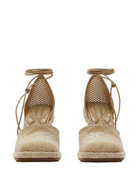 mesh plunge espadrilles Highlights - Beige - Leather - Panelled design - Mesh panelling - Plunge style - Tie-fastening ankle strap - Wedge heel - Signature equestrian knight motif - Square toe - Branded insole - Jute sole - Logo at the sole - Rubber outsole Made in Italy Composition Leather 100%