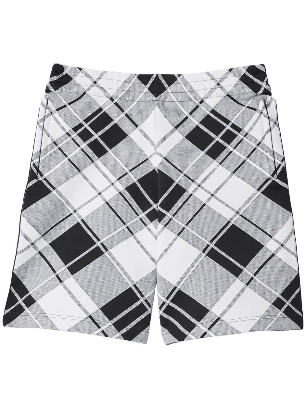 mid-rise check-print shorts Highlights - Black/white - Check print - Mid-rise - Elasticated waistband - Two side slit pockets - Knee-length Made in Italy Composition Polyester 55%, Viscose 33%, Polyamide 11%, Elastane 1%