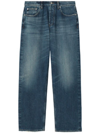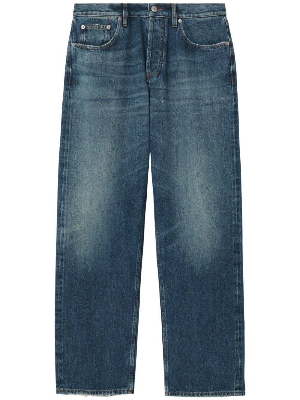 mid-rise wide-leg jeans Highlights - Blue - Cotton - Denim - Logo patch to the rear - Belt loops - Button fly fastening - Classic five pockets - Mid-rise Made in Italy Composition Cotton 100%, Calf Leather 100% Washing instructions Dry Clean Only