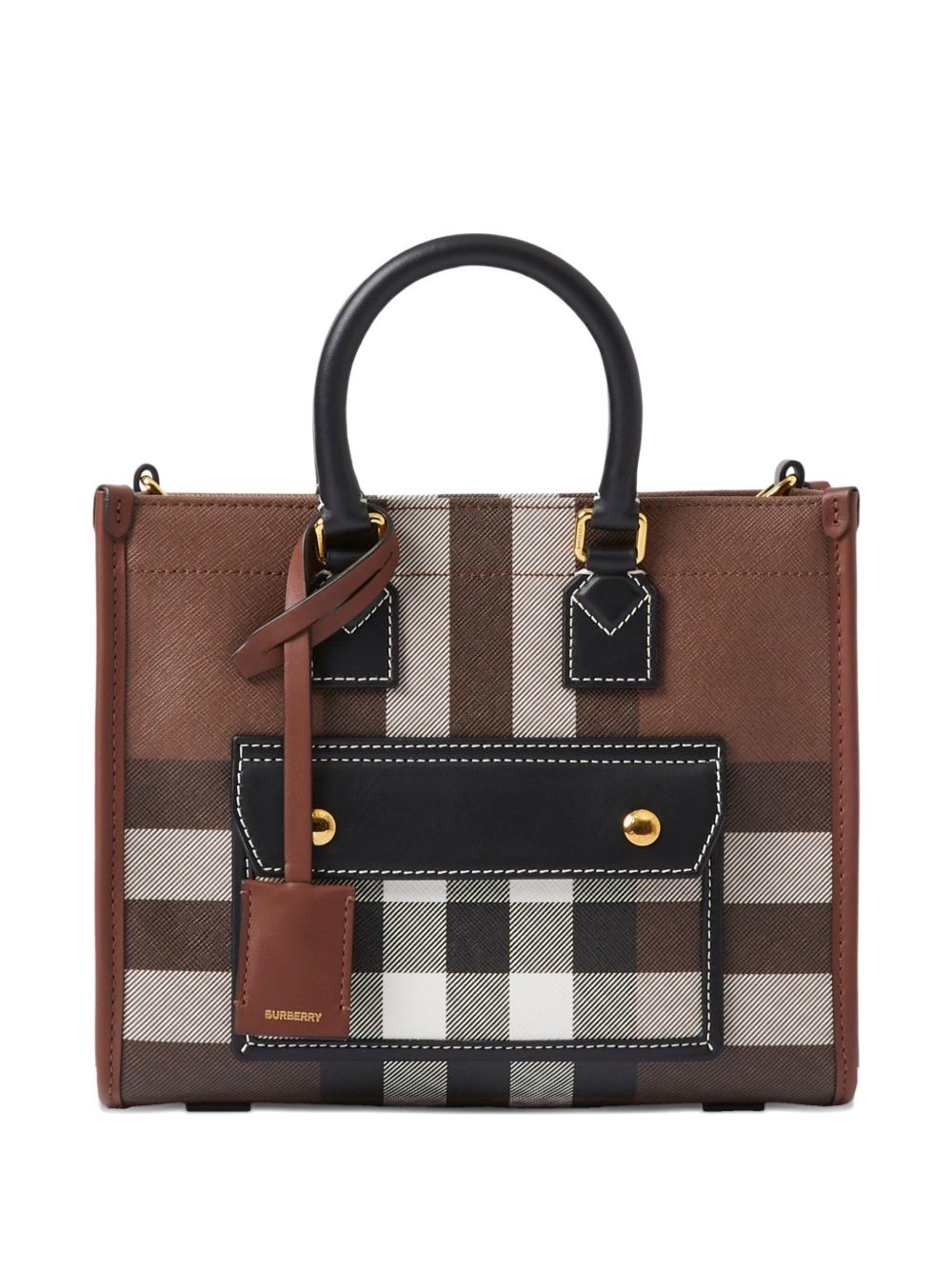mini Freya tote bag Highlights - Coffee brown - Concealed press-stud fastening - Two rolled top handles - Adjustable detachable shoulder strap - This piece comes complete with a protective dust bag. Made in Italy Composition Outer: Calf Leather 100%, Polyurethane 54%, Cotton 23%, Polyester 23% Lining: Cotton 60%, Polyester 40% SIZE & FIT Measurement DEPTH 3.14 in(8 cm) HEIGHT 7.48 in(19 cm) WIDTH 9.05 in(23 cm)