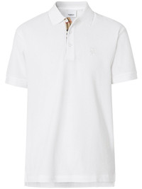 Monogram motif cotton-pique polo shirt Elevated by Burberry's signature Vintage check placket, this white polo shirt is crafted from pique cotton for a lightly textured finish. A tonal embroidered TB Monogram at the chest completes the casual design. Highlights - White - Cotton - Pique weave - Embroidered tb monogram at the chest - Vintage check placket trim - Polo collar - Front button placket - Short sleeves Imported Composition Cotton 100% Washing instructions Machine Wash