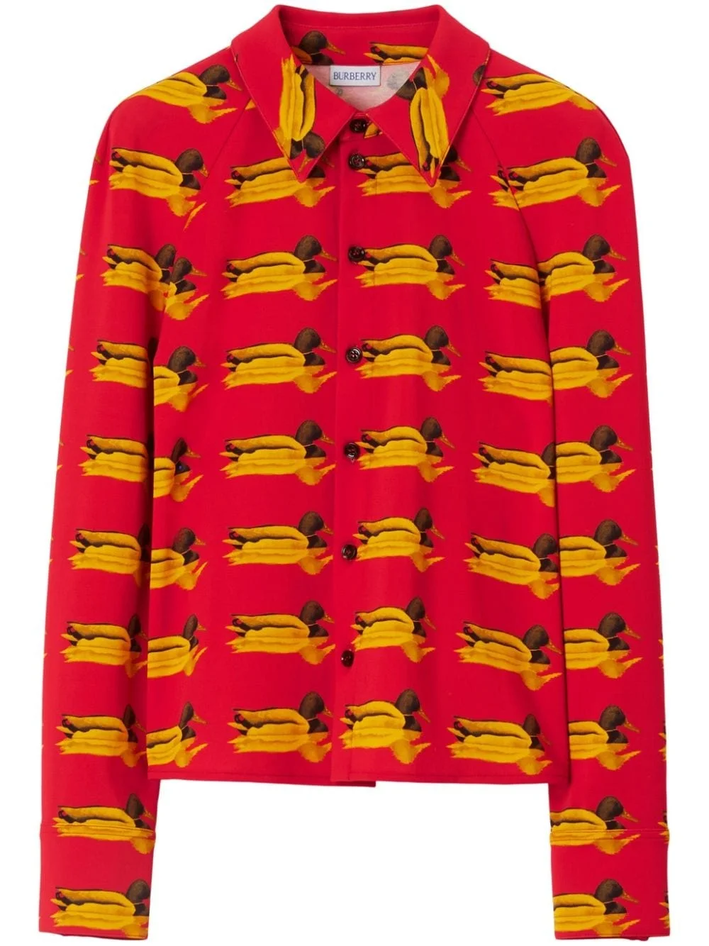 monogram-pattern spread-collar shirt Highlights - Red/multicolour - Monogram pattern - Spread collar - Front button fastening - Long raglan sleeves - Buttoned cuffs - Straight hem Made in Italy Composition Viscose 96%, Elastane 4% Washing instructions Specialist Cleaning