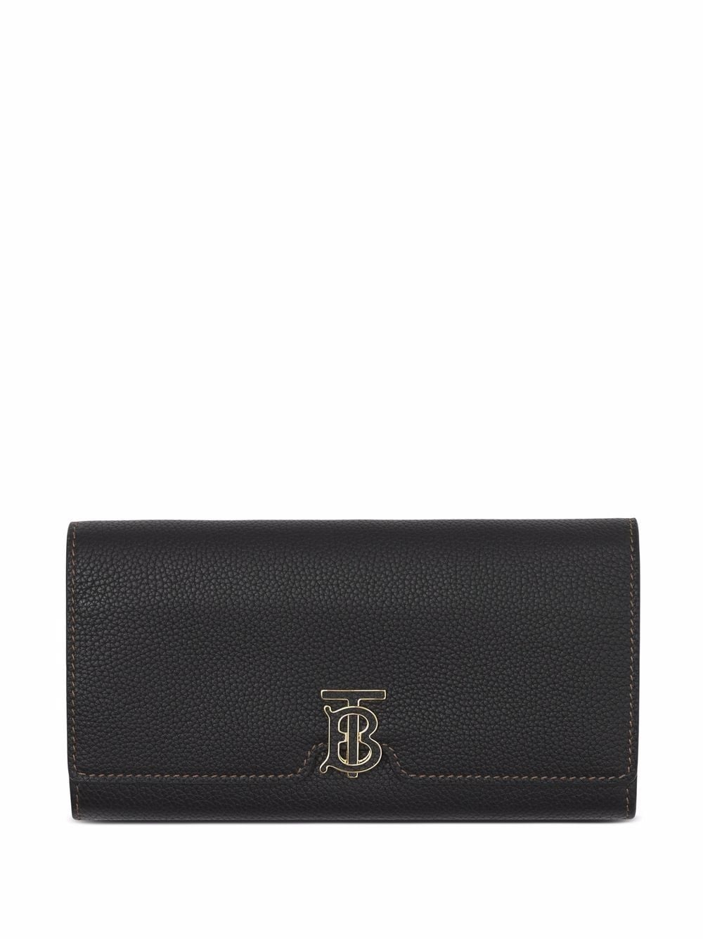 Monogram-plaque continental leather wallet Kept understated and elegant, this grained-leather Burberry wallet is simply accented with the brand's signature TB logo on the front. The interlocking initials were founder Thomas Burberry's monogram, having been reimagined as a house mainstay in 2018. Highlights - Black - Calf leather - Grained texture - Signature tb monogram plaque - Foldover top with press-stud fastening - Internal zip-fastening pocket - Internal card slots - Internal slip pocket - Note compartment Made in Italy Composition Outer: Calf Leather 100% Lining: Polyamide 100%