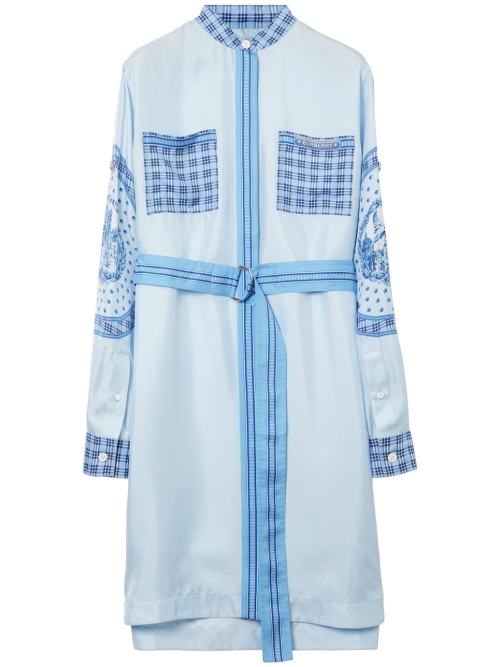 monument-print belted silk shirt dress Highlights - Blue - Silk - Check pattern - Graphic-print sleeves - Classic collar - Concealed front button fastening - Long sleeves - Buttoned cuffs - Belted waist - Two chest patch pockets - Below-knee length Made in Italy Composition Silk 100% SIZE & FIT Measurement HIPS 46.45 in(118 cm) LENGTH 39.37 in(100 cm) WAIST 46.45 in(118 cm)
